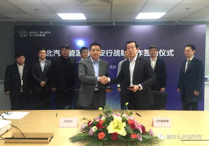 為進一步推動和發(fā)展共享交通業(yè)務(wù),打造“四位一體”的城市共享出行體系,2017年11月7日常州永安公共自行車系統(tǒng)股份有限公司(以下簡稱“永安行”)與北京新能源汽車股份有限公司(以下簡稱“北汽新能源”)在北京簽署了《戰(zhàn)略合作協(xié)議書》(以下簡稱“《協(xié)議》”)。