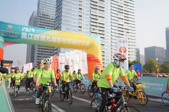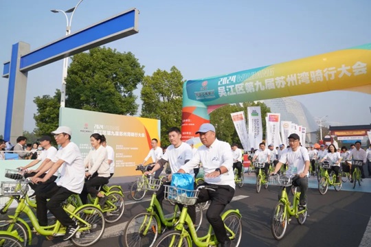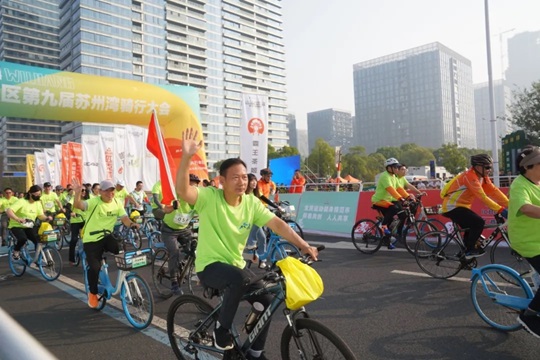 天朗氣清,湖波蕩漾,在全國場地自行車錦標賽冠軍唐佳雯、沈燕的鳴笛發(fā)令下,騎行正式開始。榮譽騎行隊和大眾騎行隊先后出發(fā),以湖景街東太湖大道路口為起點,沿太湖而行,領(lǐng)略灣區(qū)魅力,感受新城風光。