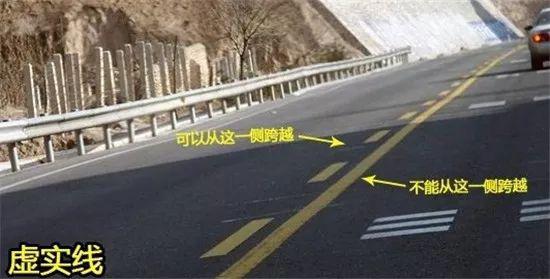 黃色虛實線實線側(cè)禁止車輛越線、虛線側(cè)準(zhǔn)許車輛臨時越線。