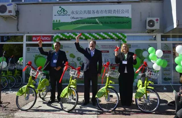 永安公司在布市運營啟動儀式今年在俄羅斯布拉戈維申斯克市先期項目工程,建設12個租車站點,安裝300個鎖車器,投放250輛自行車。主要分布在布市沿岸大街、列寧大街、結(jié)雅大街和高爾基大街,為滿足俄羅斯布市市民的需求,今后,永安公司將在布市學校、醫(yī)院、機關單位、商業(yè)區(qū)以及居民區(qū)建設自行車站點。