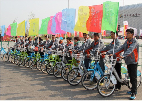 淮北分公司組織舉辦了千人騎行活動(dòng)。綠色的公共自行車,配上寫有環(huán)保標(biāo)語(yǔ)的小旗幟,再加上綠色的領(lǐng)隊(duì)旗,現(xiàn)場(chǎng)的場(chǎng)景頗為壯觀。