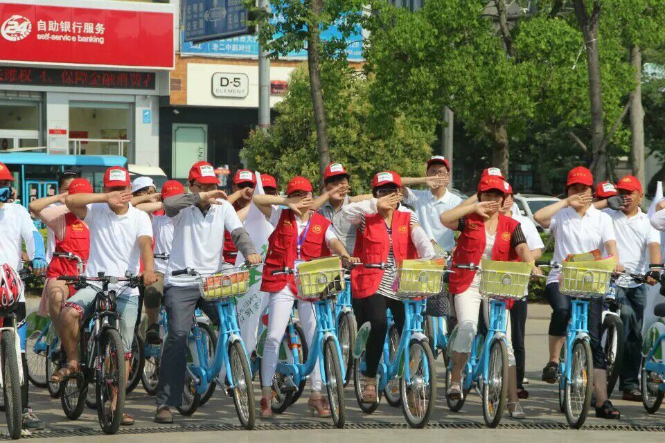 第三個(gè)“世界呼吸日”來臨之際,為了讓呼吸充滿愛,臨沭縣紅星義工聯(lián)合會(huì)、臨沭公共自行車、臨沭縣風(fēng)行和傳騎自行車單車俱樂部于6月14日上午八時(shí)在臨沭縣文化廣場舉行聲勢浩大的宣傳活動(dòng),通過低碳環(huán)保騎行和發(fā)放宣傳單等形式,倡導(dǎo)“低碳環(huán)保、綠色出行”呼吁公眾關(guān)注身邊的粉塵污染,普及塵肺常識(shí)。隨后100多名紅星義工、公共自行車員工、風(fēng)行、傳騎騎士在“大愛清塵”旗幟的引導(dǎo)下由文化廣場出發(fā)→沭新街→蒼山路→商業(yè)步行街→中山路→南外環(huán)→王朝大酒店→華城購物廣場→文化廣場。一路上騎行隊(duì)伍整齊劃一,排成長龍,井然有序,浩浩蕩蕩,成為一道美麗的風(fēng)景線,吸引了許多過往市民紛紛駐足圍觀。