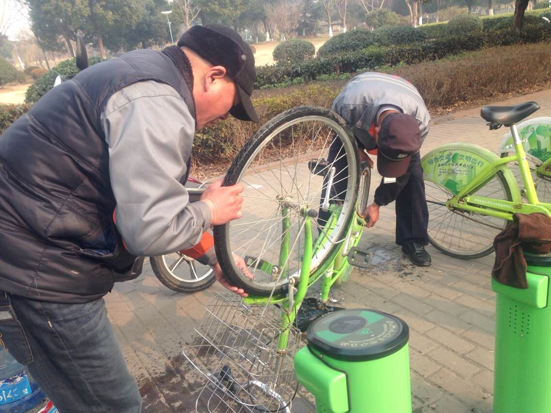 我們公司經(jīng)過商討決定,利用冬季3個(gè)月時(shí)間,全體管理層全部出動(dòng),分組分片,并召集部分現(xiàn)場(chǎng)工作人員,進(jìn)行集中維護(hù),主要包括自行車的擋板車貼更換,自行車的保潔,修補(bǔ)綠漆及車樁維護(hù)等工作。
